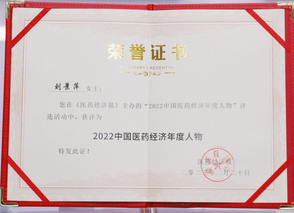 优发国际药业集团董事长刘景萍当选“2022中国医药经济年度人物”