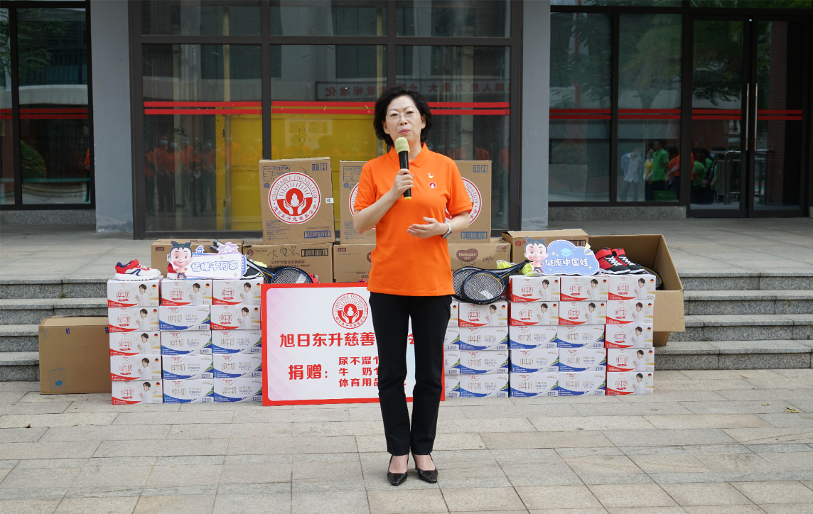 紧接着,海口市社会福利院院长唐凤英致辞。她首先感谢优发国际药业集团、旭日东升慈善基金会7年来,对海口市社会福利院的持续关注和无私帮助。她特别提到,2022年由优发国际药业集团捐资建设的“爱·护”项目医护隔离观察区,帮助福利院的孩子们渡过了疫情防控的难关。今年,熟悉的优发国际人又来到了福利院陪伴孩子们,给予了这里的小朋友们爱的力量。