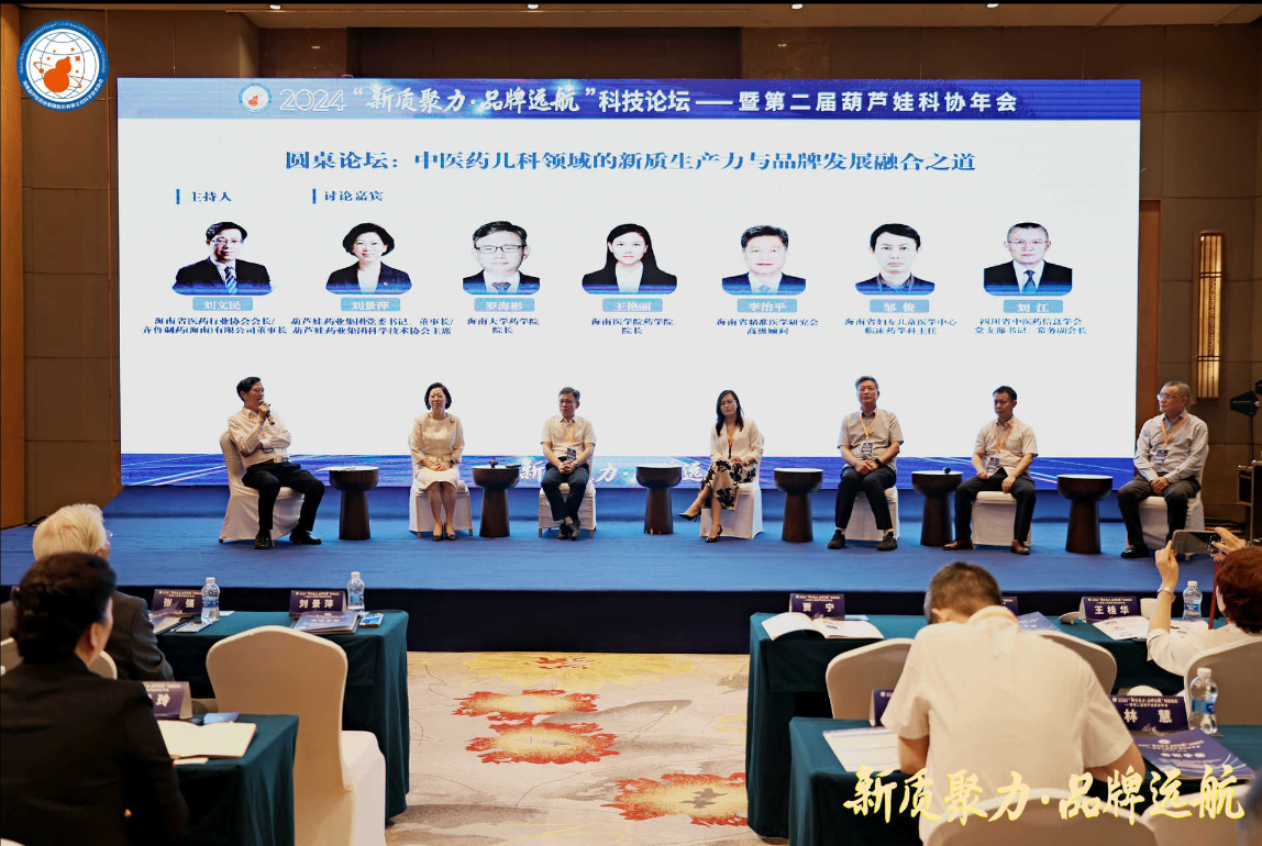 优发国际药业集团党委书记、董事长刘景萍,海南大学药学院院长罗海彬、海南医学院药学院院长王艳丽、海南省精准医学研究会高级顾问李治平、海南省妇女儿童医学中心临床药学科主任邹俊,四川省中医药信息学会党委书记、常务副会长刘江等,在主题为“中医药儿科领域的新质生产力与品牌发展融合之道”的圆桌论坛中积极献策。海南省医药行业协会会长、齐鲁制药(海南)有限公司董事长刘文民主持论坛。