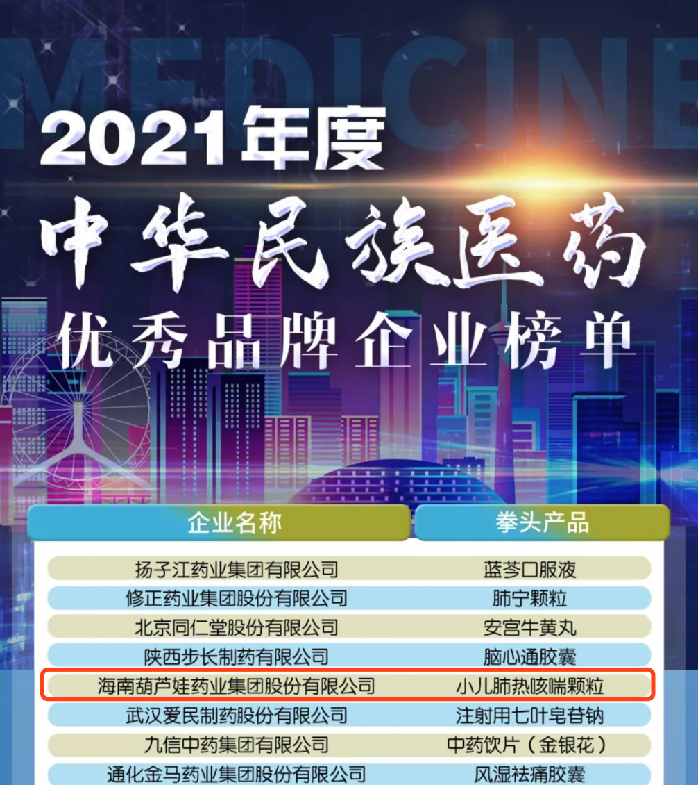 12月29日,全国工商联医药业商会发布了“2021年度中华民族医药优秀品牌企业榜单”,优发国际药业集团凭借黄金单品小儿肺热咳喘颗粒(4克)实力登榜。